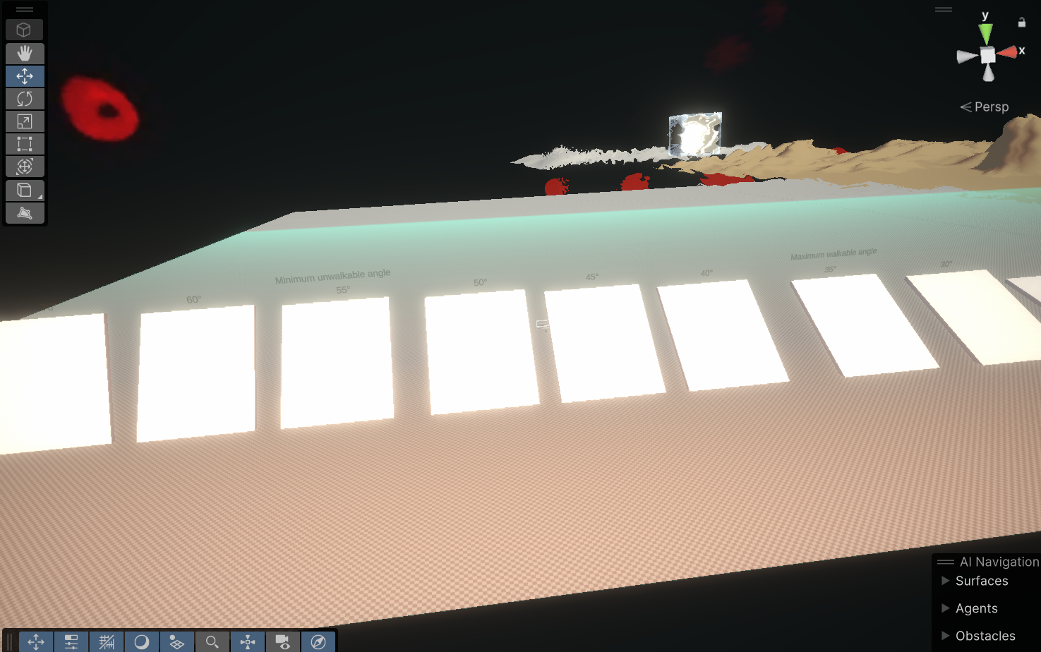 No jump and limited slope traversal (≥50°) encourage terrain-based navigation.